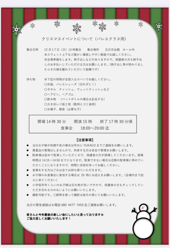 ・クリスマス会について(バレエクラス)