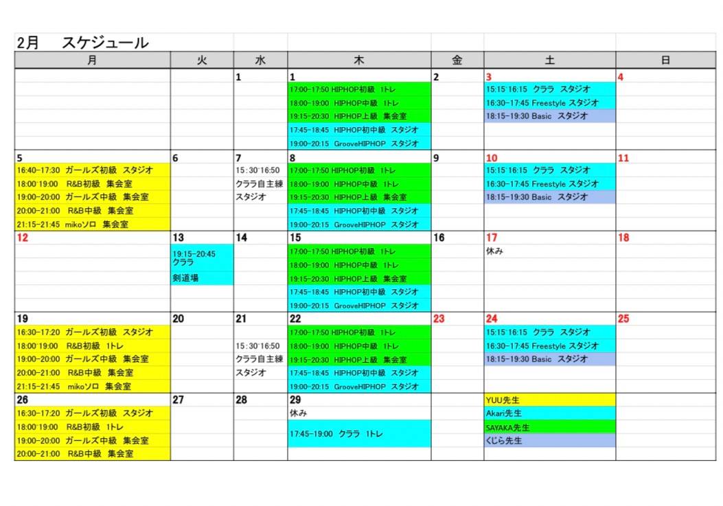 ・2月のスケジュール